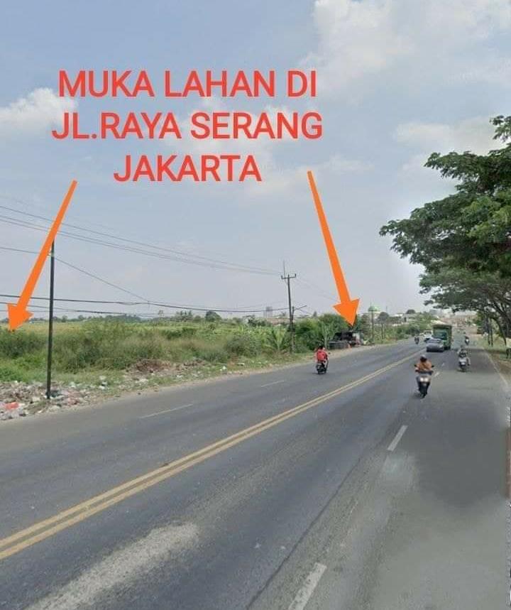 * Lebar muka lahan pertama di bagian depan di Jl.Raya provinsi lebar 45 meter disisi jalan raya Jakarta-Serang.